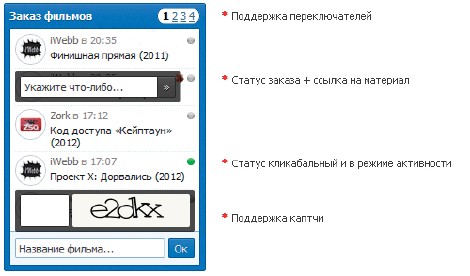 Быстрый, удобный и красивый блок «Заказ фильмов» основанный на модуле "Гостевая книга (/gb)". Скрипт был сделан по просьбам пользователей. Интерфейс очень удобен и красив, отлично подойдет для светлых дизайнов, а в других случаях можно подправить под дизайн. Ах да, как и вы наверное заметили, в данном скрипте поддерживаются: переключатели, статус заказа и каптча + не мало других мелочей.